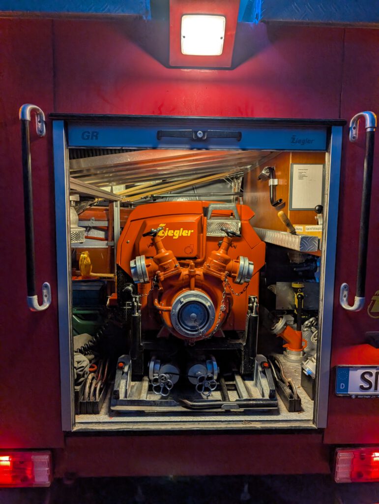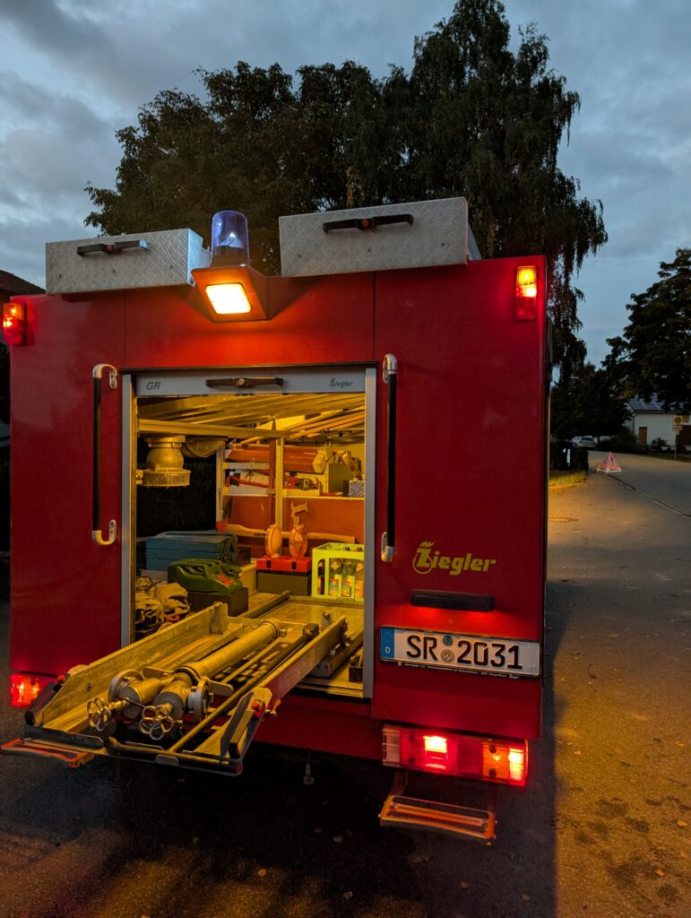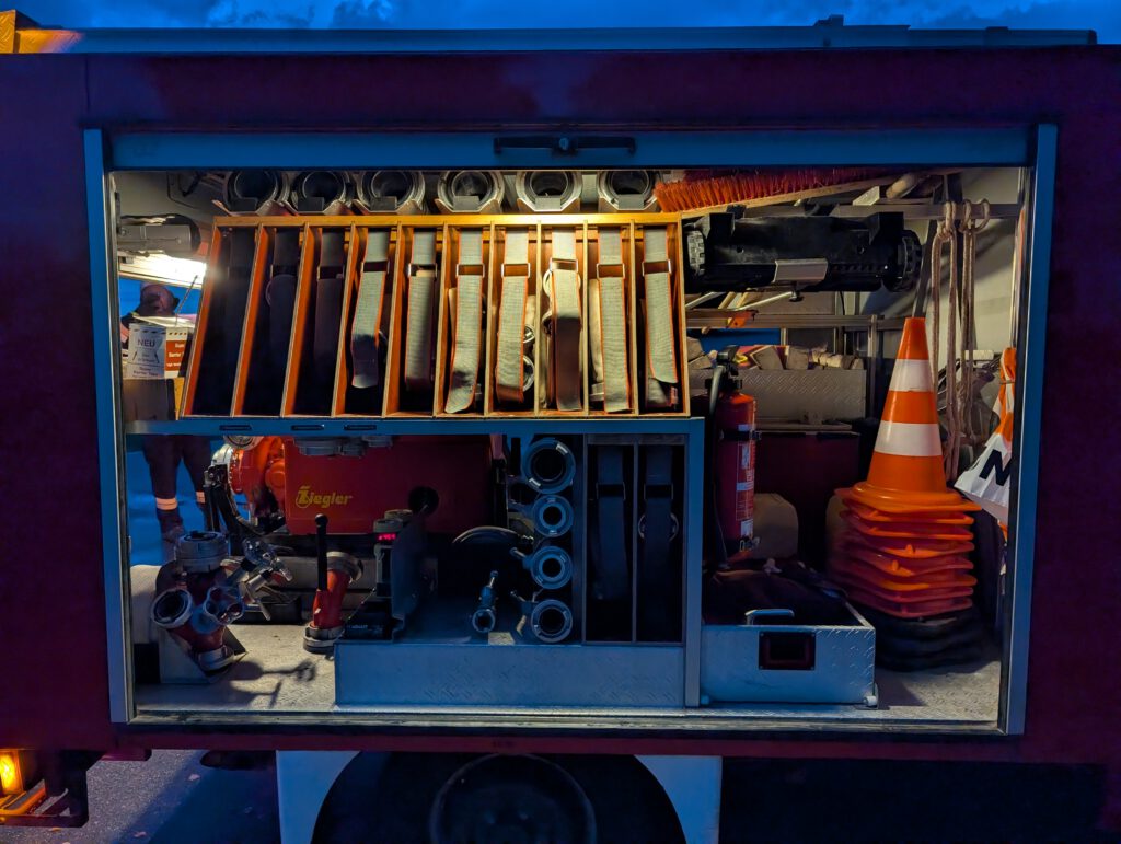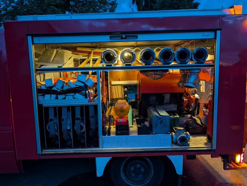 Unser Fahrzeug ist beladen mit Ausrüstung zum Brandschutz und leichter technischer Hilfeleistung.